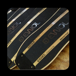 The 'naked' boards, see the use of carbon to strenghten the board and make it stiffer. The kevlar is used to reinforce the mounting of the front and rear wheel suspension.